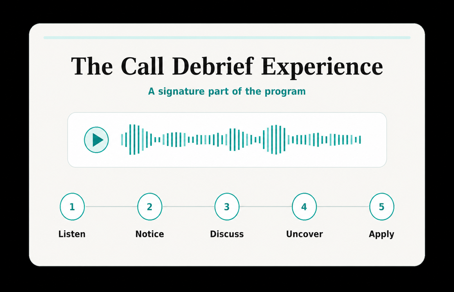 A 40-page manual with the full methodology, talk tracks for tough conversations, diagnostic tools, and weekly practice frameworks. Built to be used long after the cohort ends.